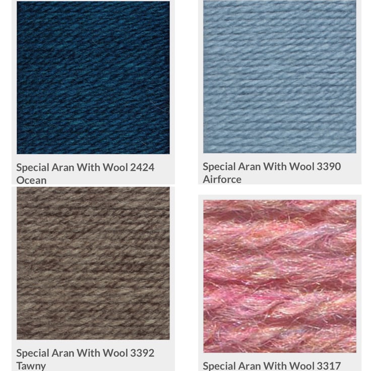 Knit with 2 x 400 gram balls of StyleCrafts Special Aran with Wool (worked double throughout).