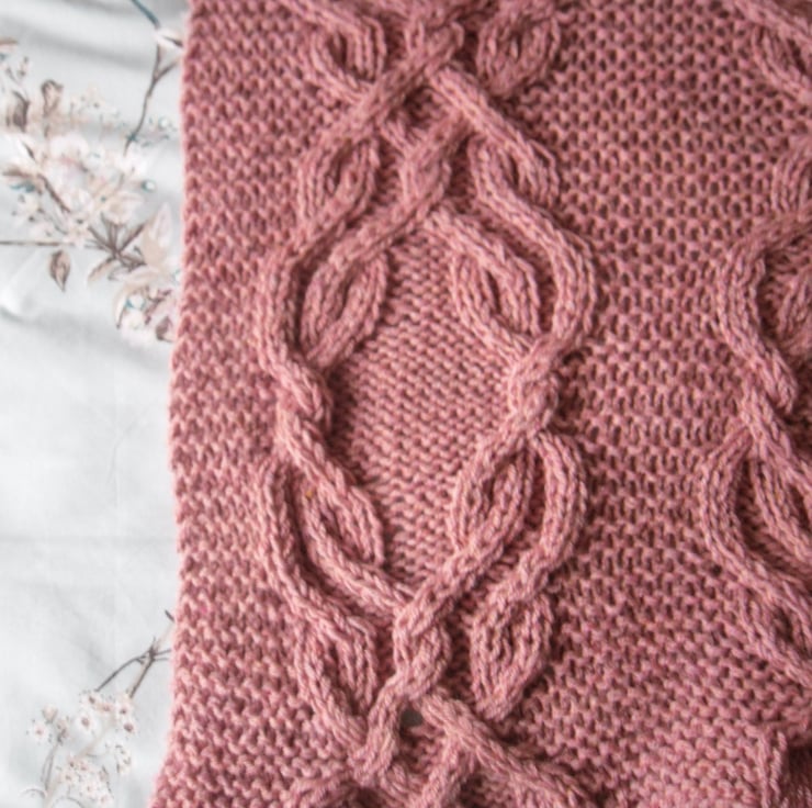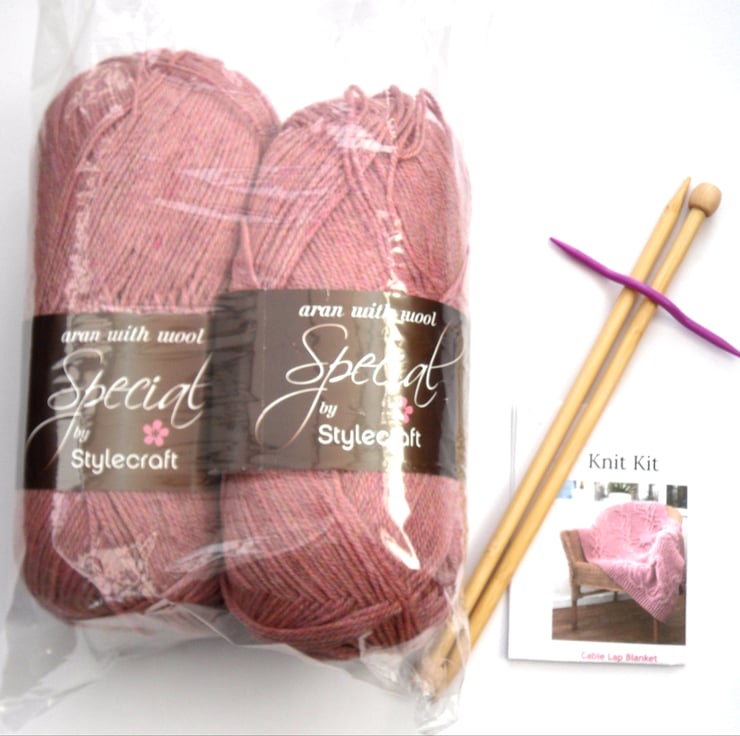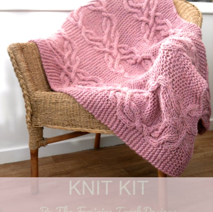 Knitting kit to knit your very own cable lap blanket / throw . It's finished size is 32” wide and 42” long , great for snuggling into.