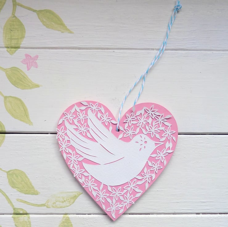 The bird was hand drawn and hand cut using just a scalpel on 160gsm soft white paper by Gemma Esprey.