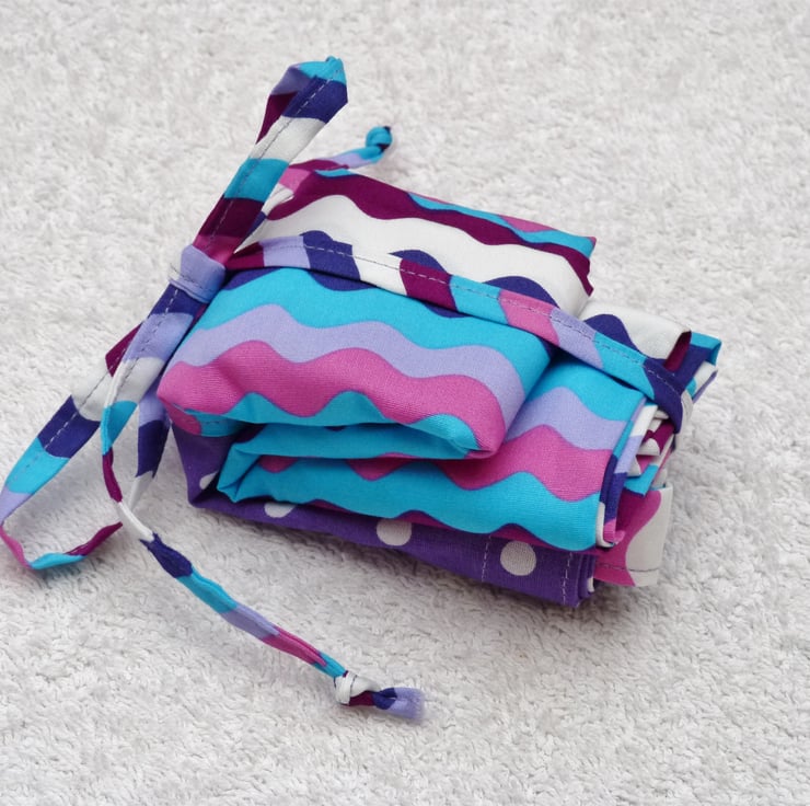 With the introduction of 5p carrier bags in shops, I have re-designed my tote bag, to include ties, so the bag can be folded really nice and small, to be carried with you for all eventualities!