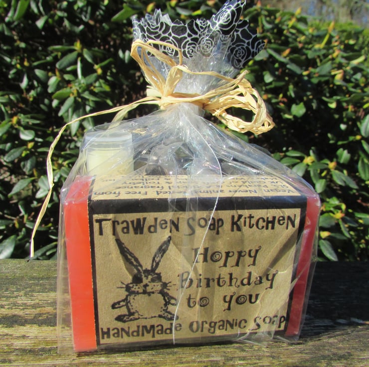 100g Aromatherapy Soap with Cinnamon & Grapefruit essential oil, with bunny on the label . Choose from Hoppy Birthday / My Heart Belongs to You