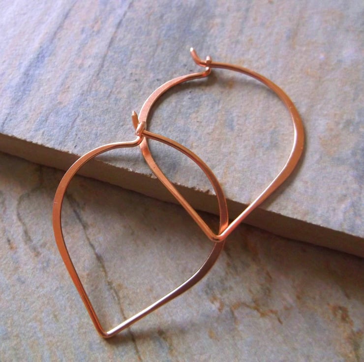 These are a lovely hoop earring in 22k rose gold vermeil. Gold vermeil is a superior plating on sterling silver. Free gift box tied with ribbon. I also make these in yellow gold and silver so please do ask. 30mm in size.