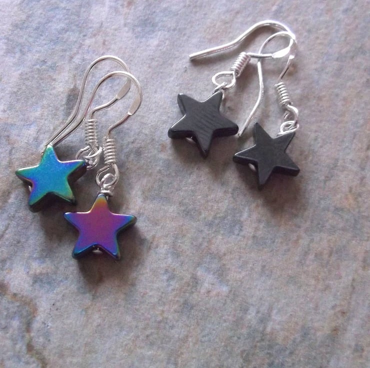 A pretty 8mm size star in the semi-precious stone of hematite, in the metallic charcoal colour or the rainbow colour. Once ordered please state which one. I can make multiples of these so please do ask. free organza gift pouch.