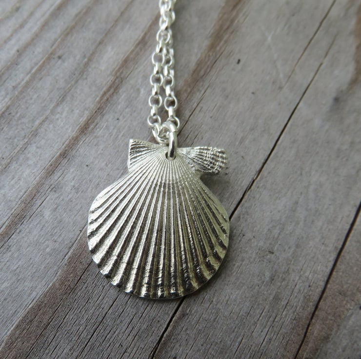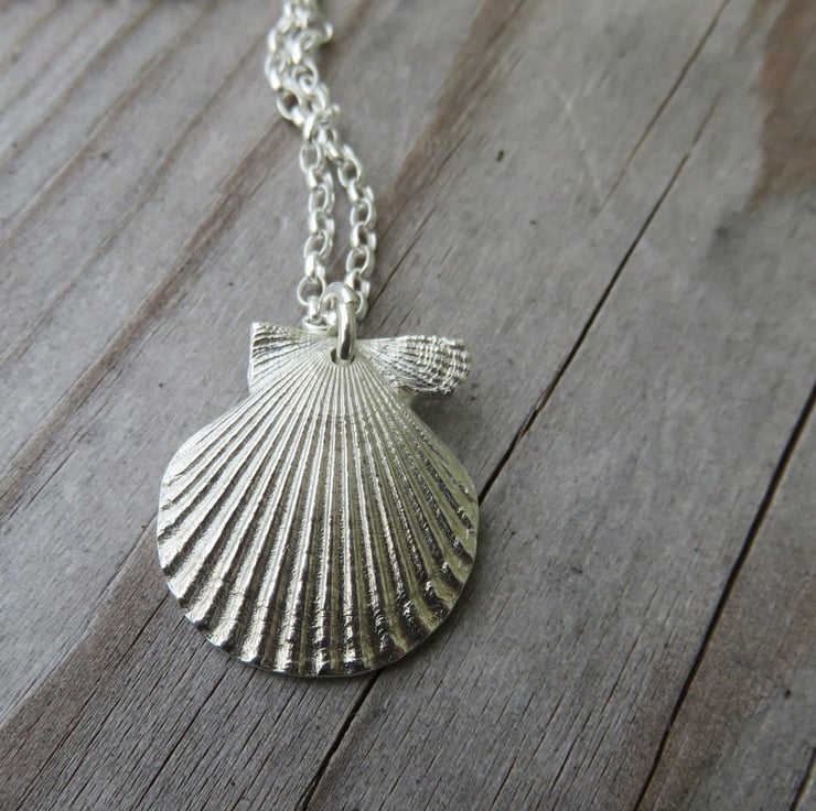 This pretty Shell is fine silver and comes on an 18inch sterling silver chain.