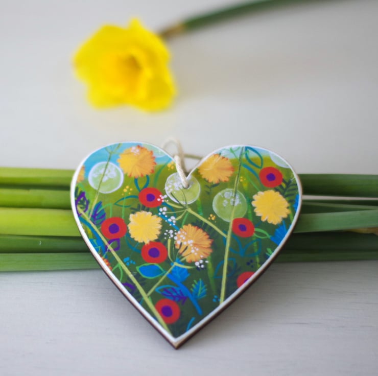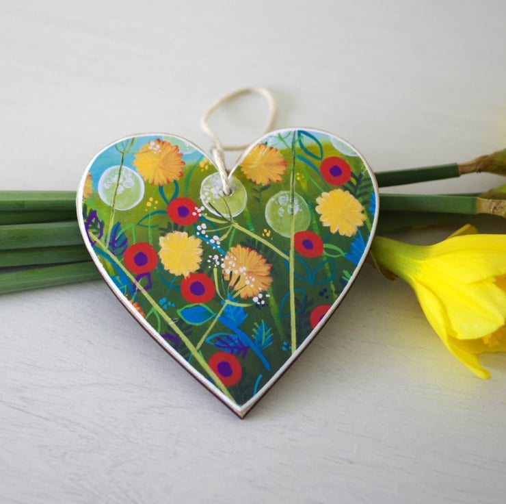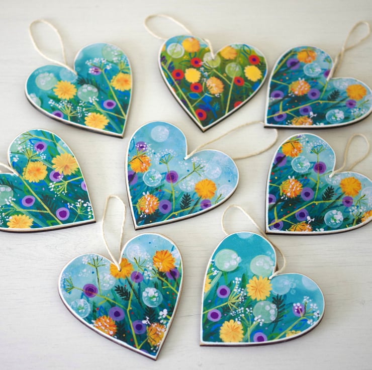 I made this floral hanging decoration using a print after my original painting titled 'Late Spring' which I mounted on a wooden heart shape. The image is printed at home on 230 GSM card. The heart measures approx 4" x 4". This is perfect as a gift for Valentine's Day or Mother's Day or any other occasion.