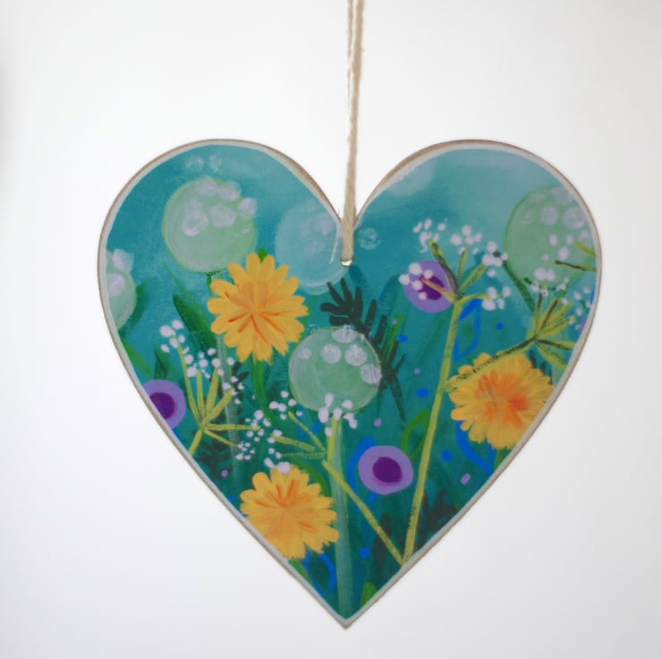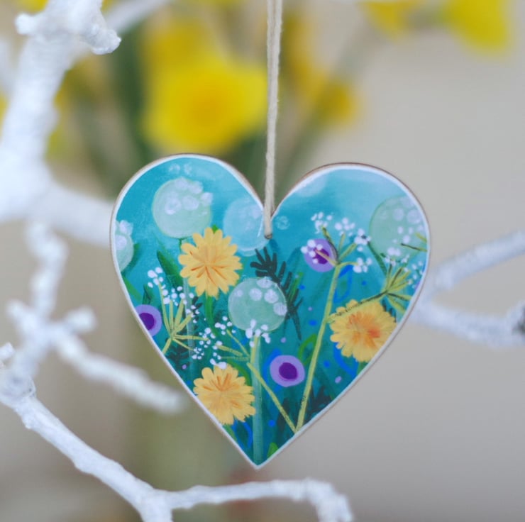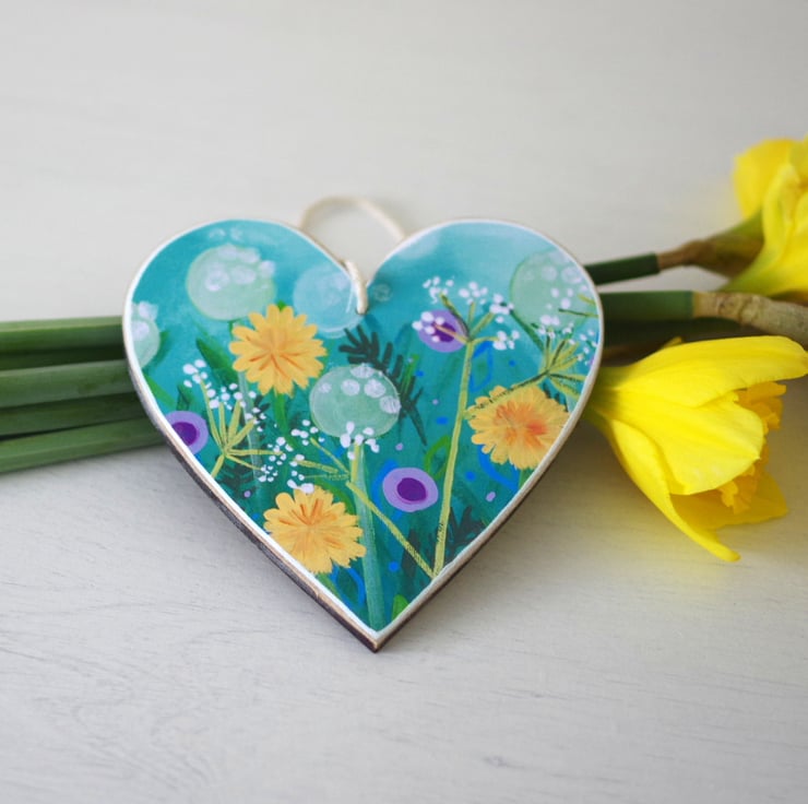 This heart floral hanging decoration is made using a print after one of my paintings mounted on a wooden heart shape. The decoration measures approx 4" x 4" and it is perfect as a gift for Valentine's Day, Mother's Day, Easter or house warming gift. Equally, you can keep it for yourself for a touch of colour in your home. The reverse side is painted in turquoise and varnished.