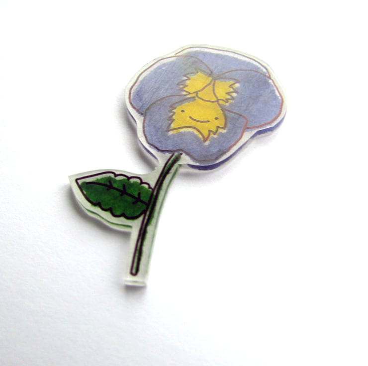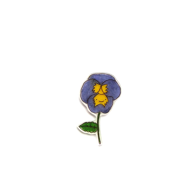 The pansy has been hand drawn on to frosted plastic and lightly varnished. On a white A6 card with envelope.