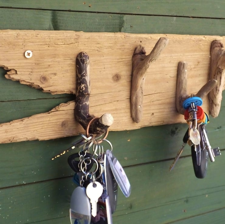 This crude, natural rack can be used to hang a multitude of things such as car keys, dog lead, garage or shed keys, or simply a coat hook.