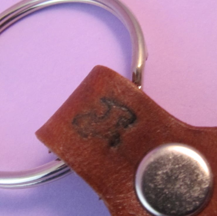 The leather measures 3 inches (7.5 cm) long and nearly 2 inches (4.8 cm) wide. It is 2 mm thick. The keyring is 3.4 cm in diameter.