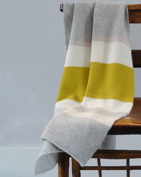 The throw coordinates with the sunflower yellow, putty, warm white and palest grey striped cushion shown in a separate listing.
