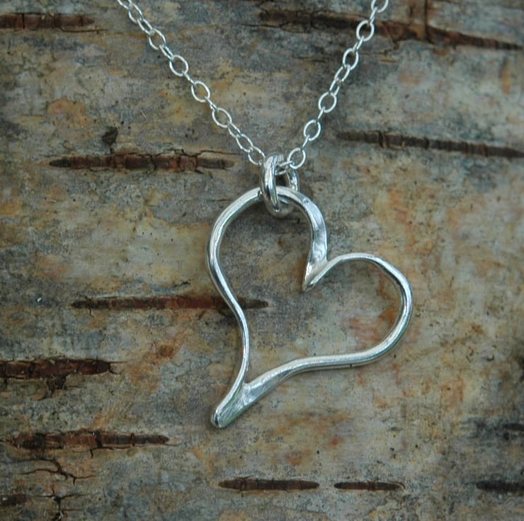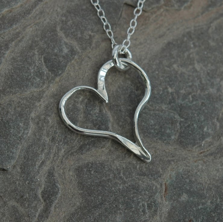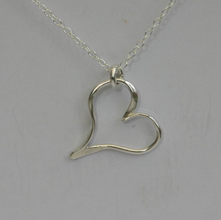 This lovely pendant makes a perfect gift for Valentine's Day or for a birthday or anniversary. It is made from two pieces of sterling silver wire, 1.5mm wide, which have been tapered at the ends before forming them into a heart shape and soldering together.