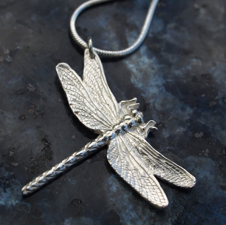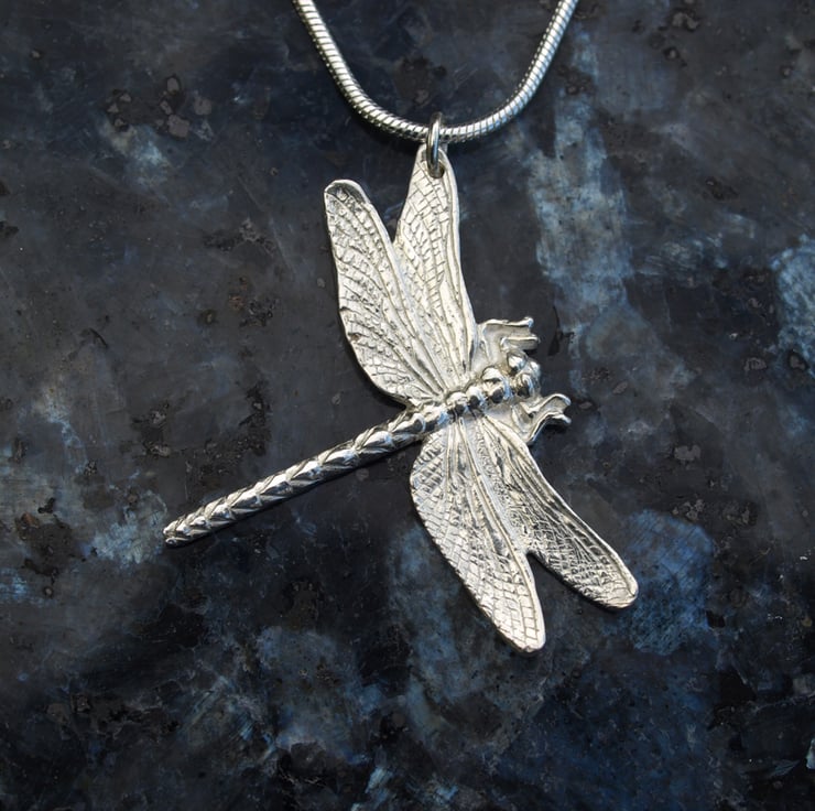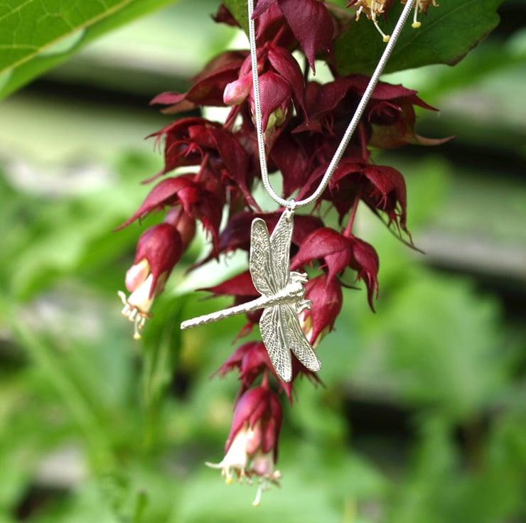 This lovely Dragonfly is sterling silver and comes on an 18 inch sterling silver chain.