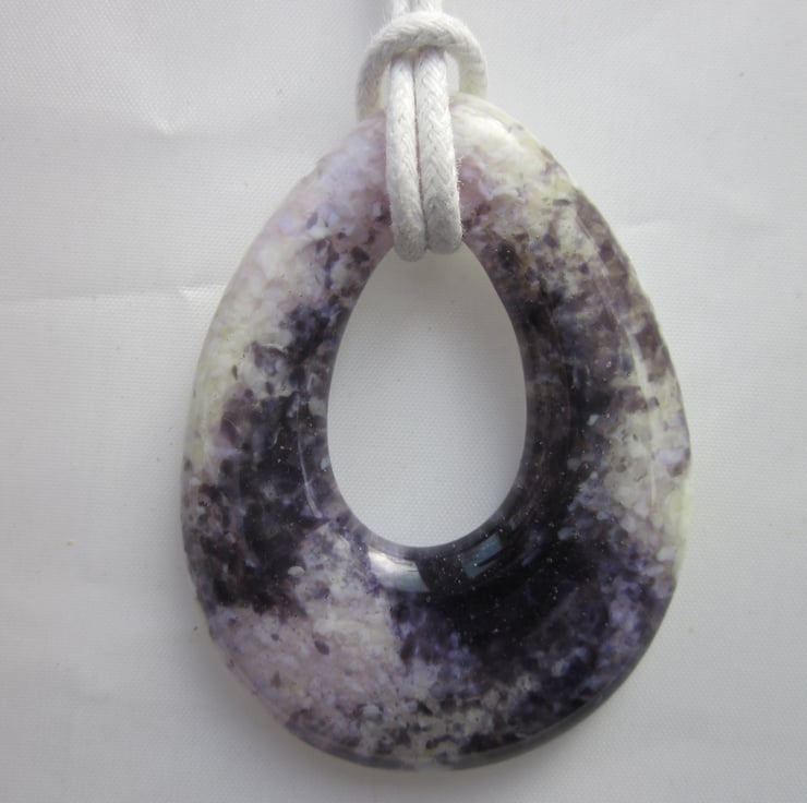 This pendant is tied with a white cord for more informal daily wear. Please note that this pendant is not in my silk ribbon range.