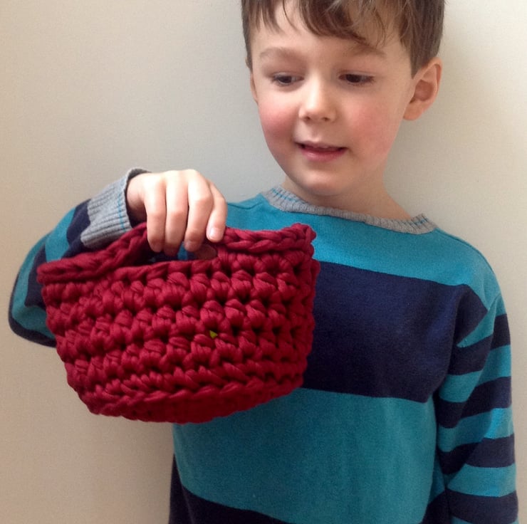 Keep all those small toys neat and tidy in a chunky crochet basket.