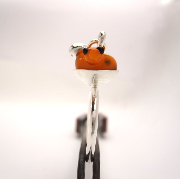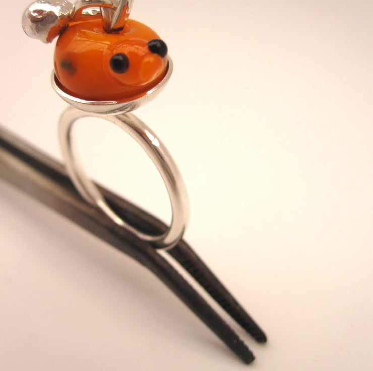 Completely handmade in my studio, using traditional silversmithing and lampworking techniques, this original design will make a fun talking point. Constructed from 1.9 mm diameter sterling silver wire, the ring is tough (but probably best to wear for ornament rather than digging the garden).