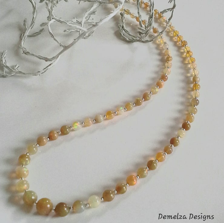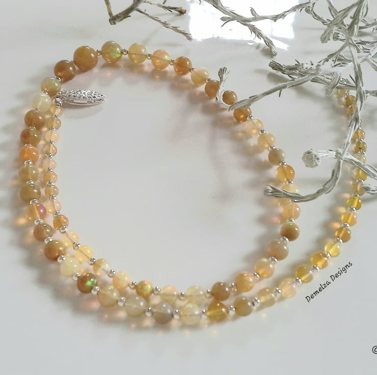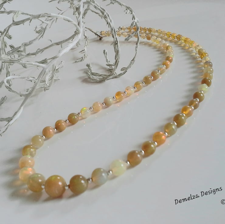 The necklace has been constructed using professional coated stainless steel jewellers wire for added strength and lasting durability. Between each stunning graduated wello opal from Ethiopia are 2mm sterling silver spacer beads to compliment the opals. I have incorporated a traditional design sterling silver filigree clasp commonly used within the industry for quality opals and natural sea pearl necklaces. The finished length is approximately 18", unfortunately this item can not be extended in length using more opals.