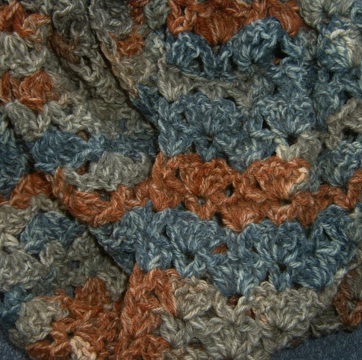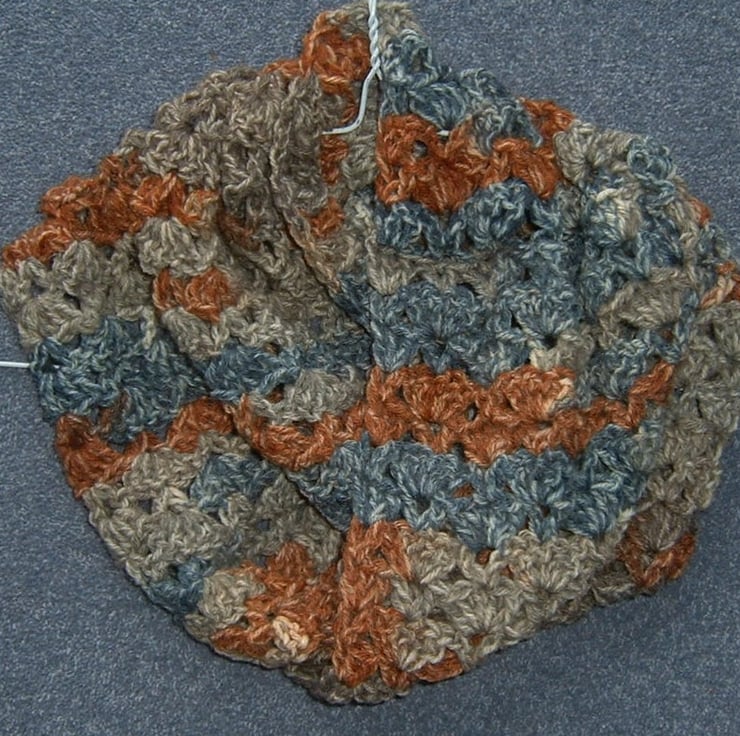 This lovely soft cowl neck scarf has been crocheted in a beautiful random acrylic yarn.