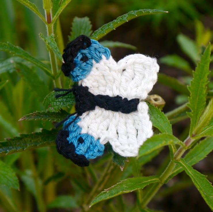 A pretty little crocheted butterfly brooch perfect for brightening up your coats, scarves and accessories. It has been crocheted using good quality 100% cotton. It has a brooch pin on the reverse for attaching to your clothing. It measures approx 6cm x 4cm at the widest part.