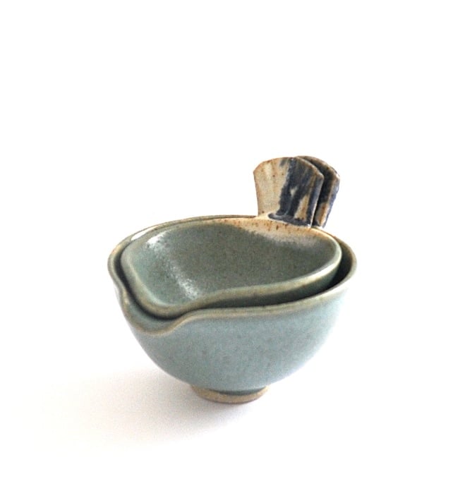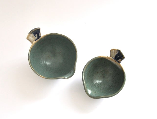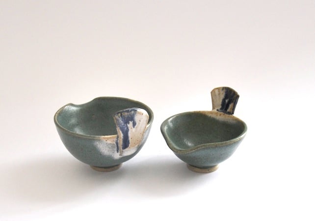 With their tails and beak-like pouring lips these two bowls may look like little birds, but they are a set of well-behaved mini pourers that in addition to looking cute will make themselves useful adding dips, dressings, oil or spices to your food as they nestle snugly in your hand.