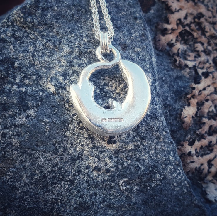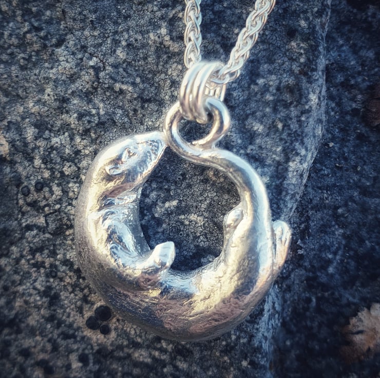 This lovely otter is made of sterling silver and hangs of a choice of 18inch sterling silver chain.