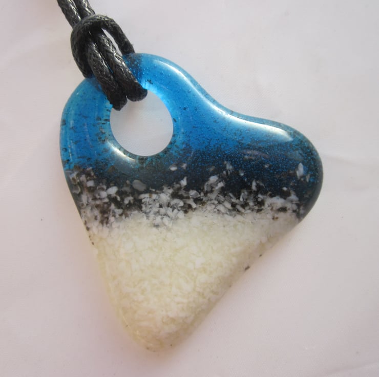 This glass cabochon was fused by me. It was cast in a mould and then the glass was heated up to around 780 degrees celsius in a small glass fusing kiln and then it was then brought to annealing temperature to make it strong. It was then fire polished in the kiln to create the smooth surface. This whole process takes over 17 hours to complete.