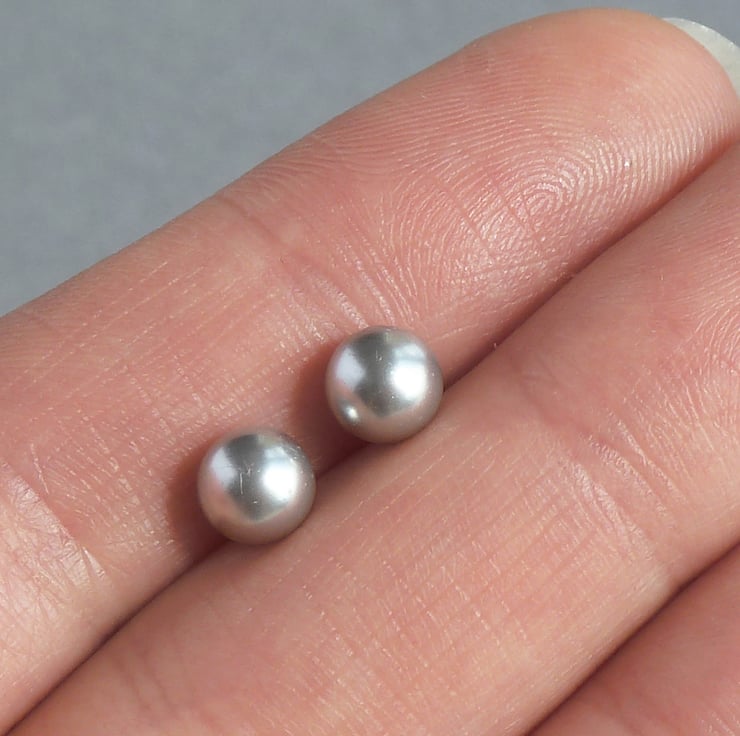 This simple pair of silver grey pearl studs has been created using 6mm light grey glass pearls. All of the fittings used are Sterling silver. All of my stud earrings are sold with butterfly backs to ensure they stay securely in place.