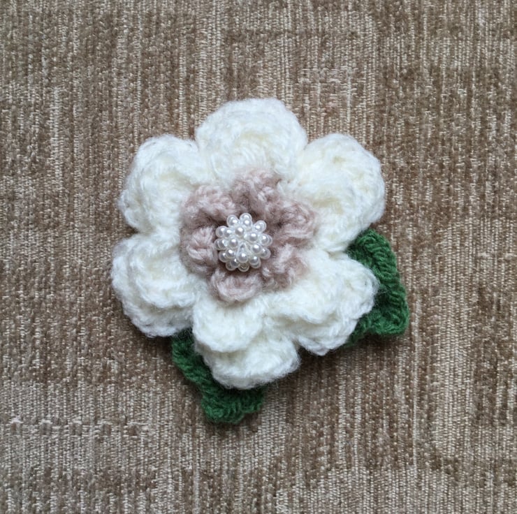 Hand crocheted pretty flower brooch corsage in a good quality acrylic yarn.