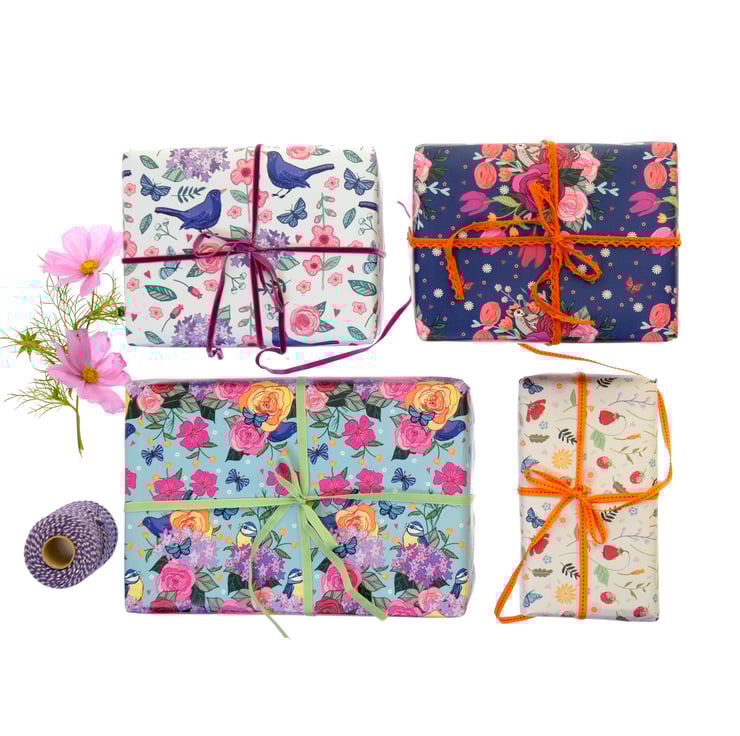 Gift wrap comes as folded flat sheets inside a protective cello sleeve.