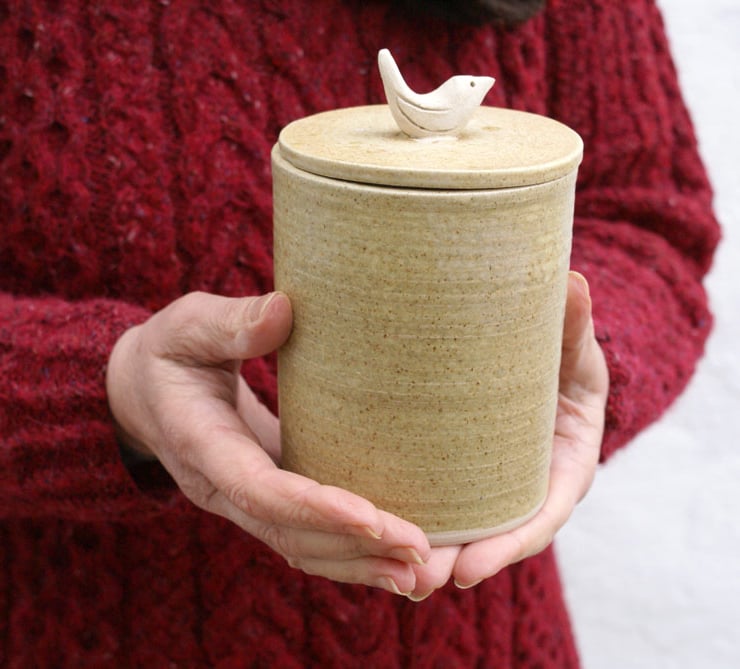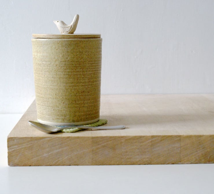 Pottery kitchen canister jar glazed in natural brown with little wren. Handmade Stoneware Pottery by littlewrenpottery on Folksy.