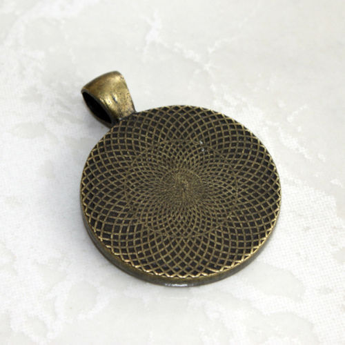 The image is sealed under a 25mm glass cabochon and set into a bronze plated bezel with bail.