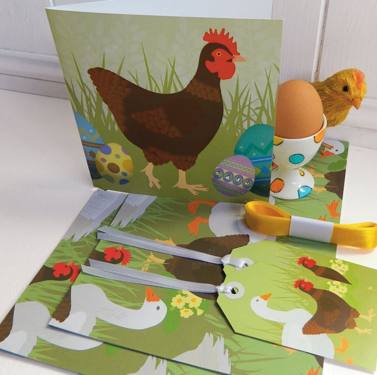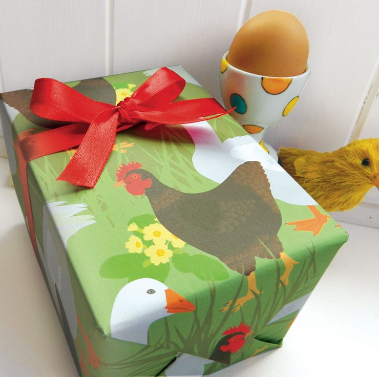Easter Hen gift wrapping paper set - complete with hand embellished Swarovski Crystal Easter card and matching tags. Perfect for wrapping Easter gifts!