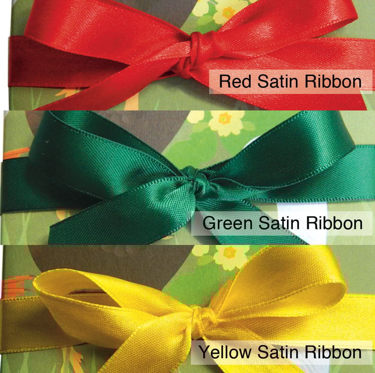 Each set includes two sheets of high quality matt finish gift wrap, two matching gift tags, one Easter card with Swarovski crystal embellishments and two metres of high quality satin ribbon of your colour choice - please add a note of which ribbon your would prefer: Red, Green or Yellow.