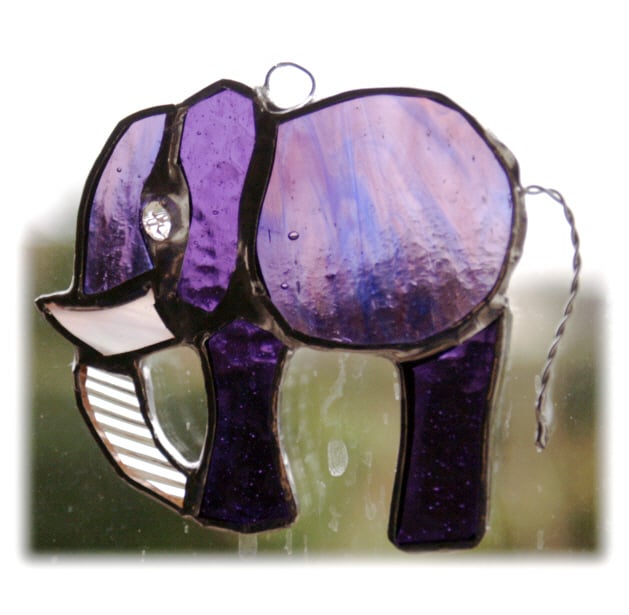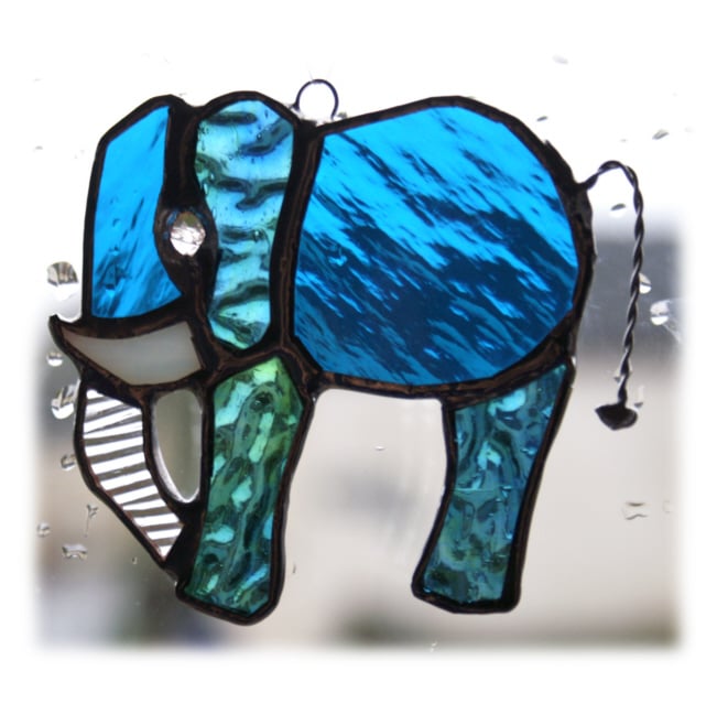 The elephant looks lovely hanging in the window where it catches the light. It hangs from a strong nylon thread which is securely attached to the top of the elephant.