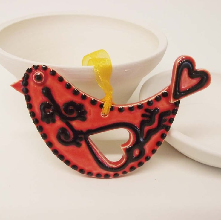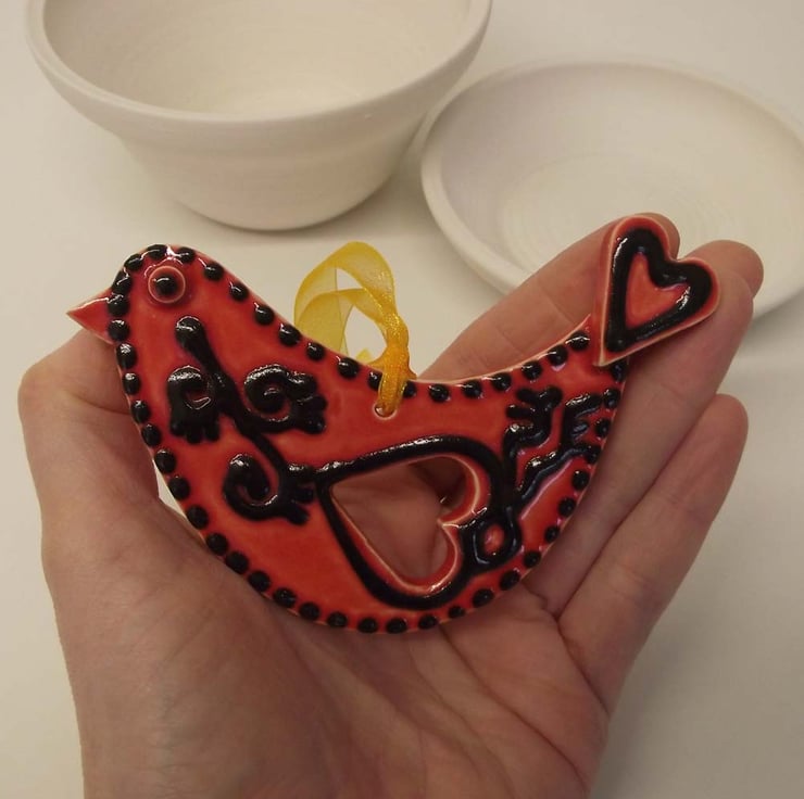 It has then been glazed with a lovely glossy colour and fired again to 1100 degrees.
