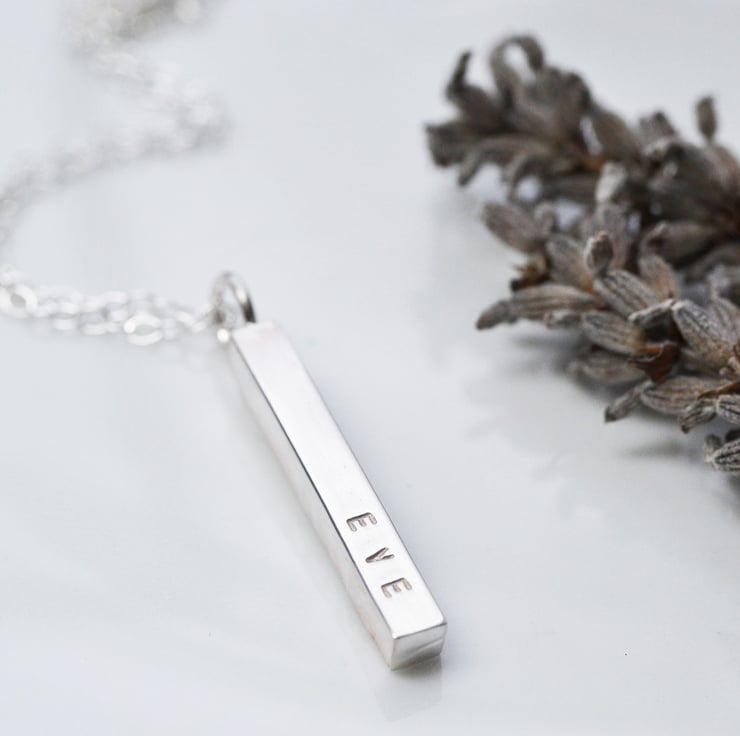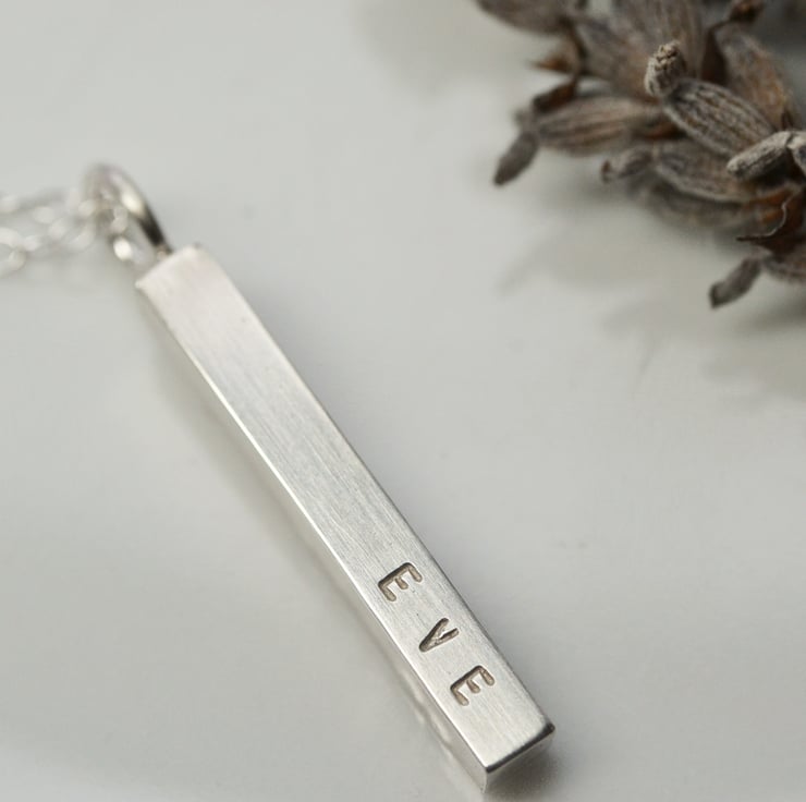 This sterling silver bar is 3mm by 3mm and can have your choice of text on all four sides.