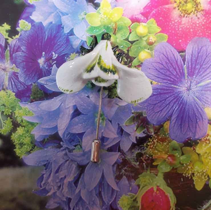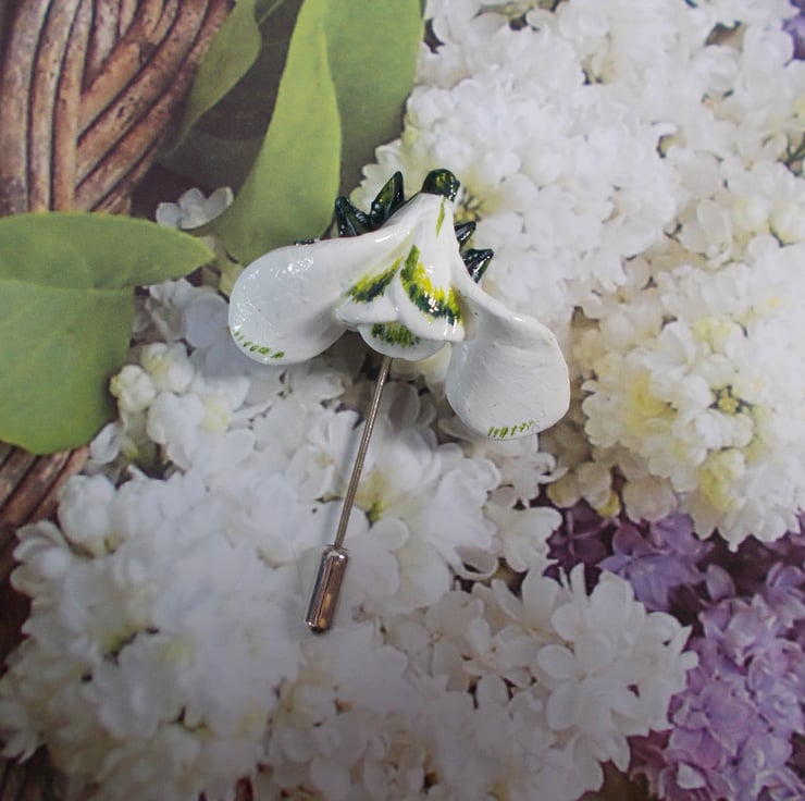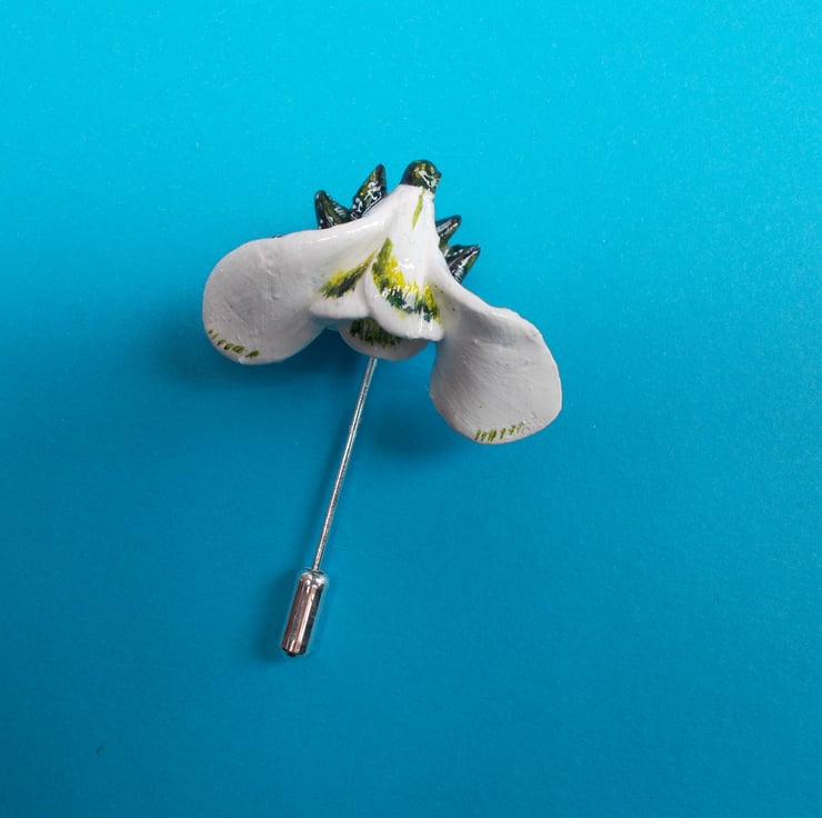 Delicate Spring SNOWDROP PIN Wedding Lapel Flower Brooch HANDMADE HAND PAINTED