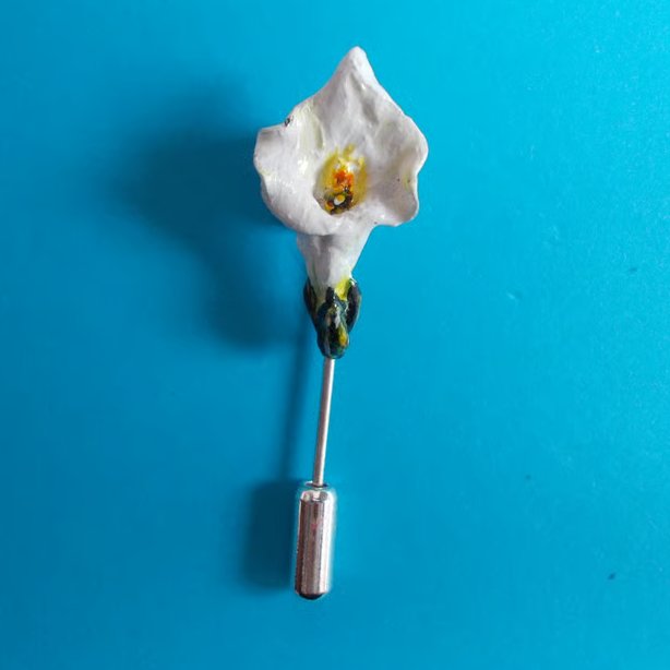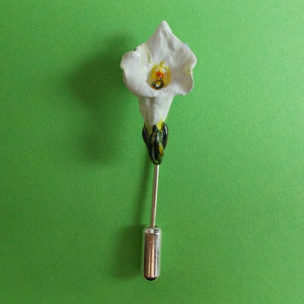 The Tiny WHITE CALLA LILY- ARUM LILY STICK PIN....... Lapel Flower Pin- Brooch.