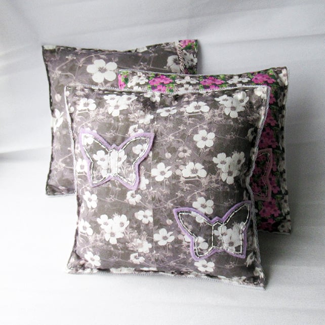 This stylish mini cushion has been handmade using my own designed silver grey and white flowers fabric.