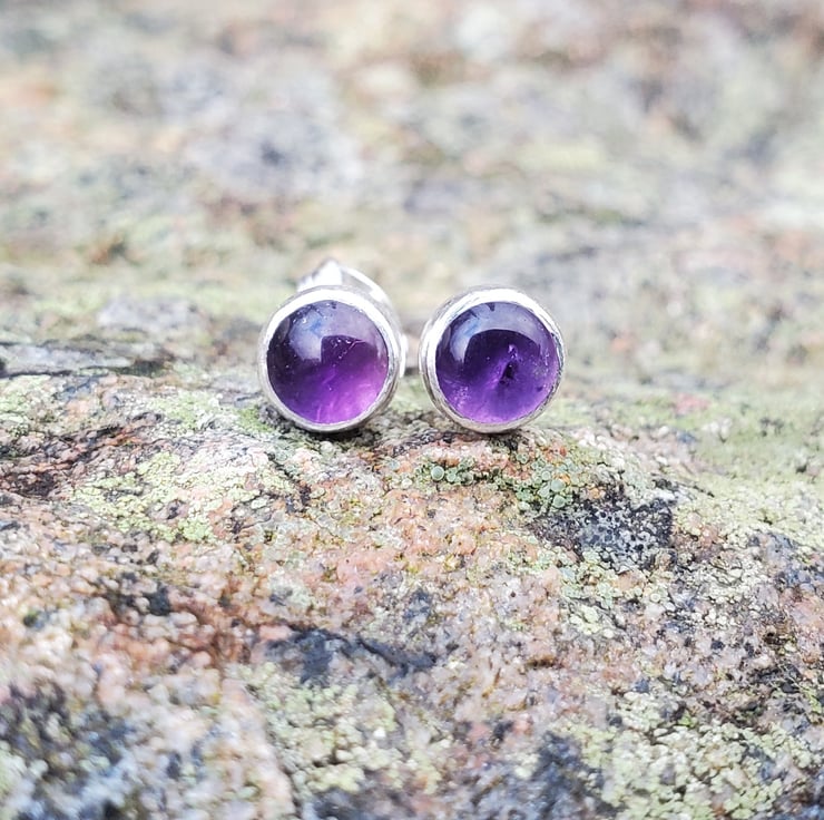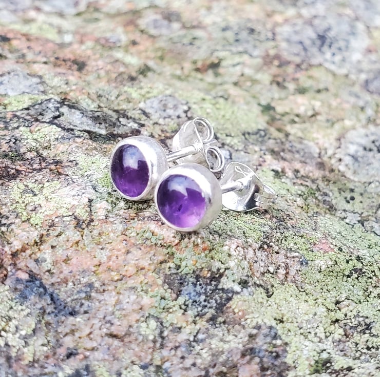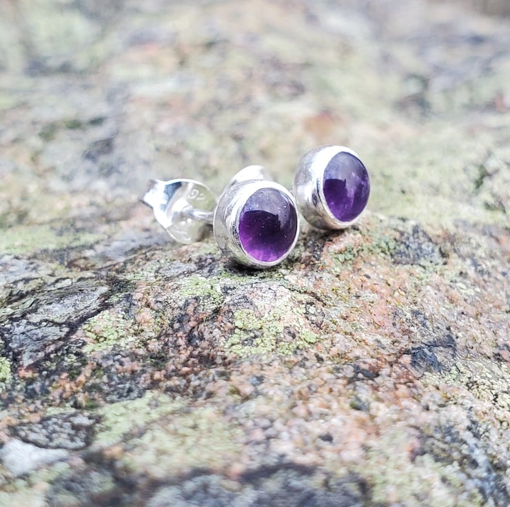 These lovely handmade studs are sterling silver with top quality 5mm Amethyst stones that shine a bright beautiful purple .