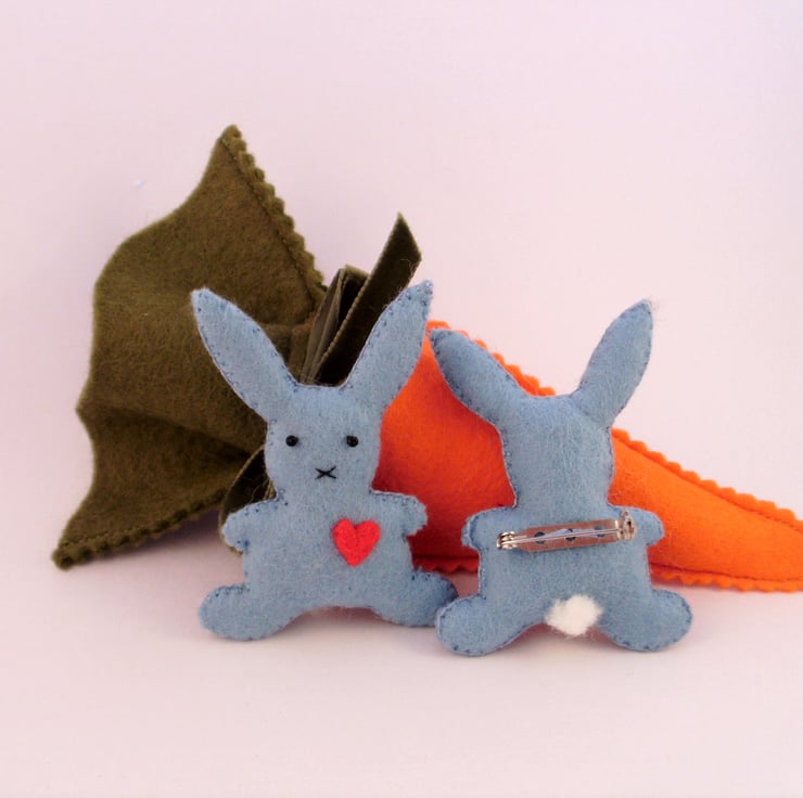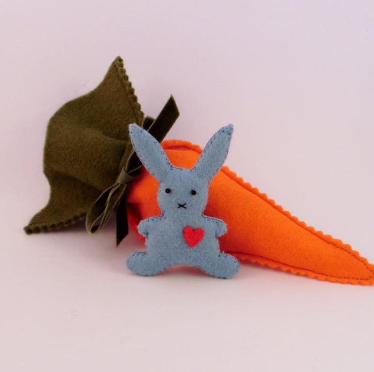 Listing is for one carrot bag and rabbit brooch available in pink or blue.
