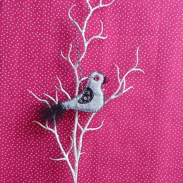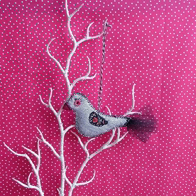 This pretty little hanging bird decoration is called Dotty, and she loves to have fun.