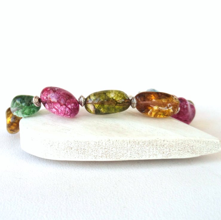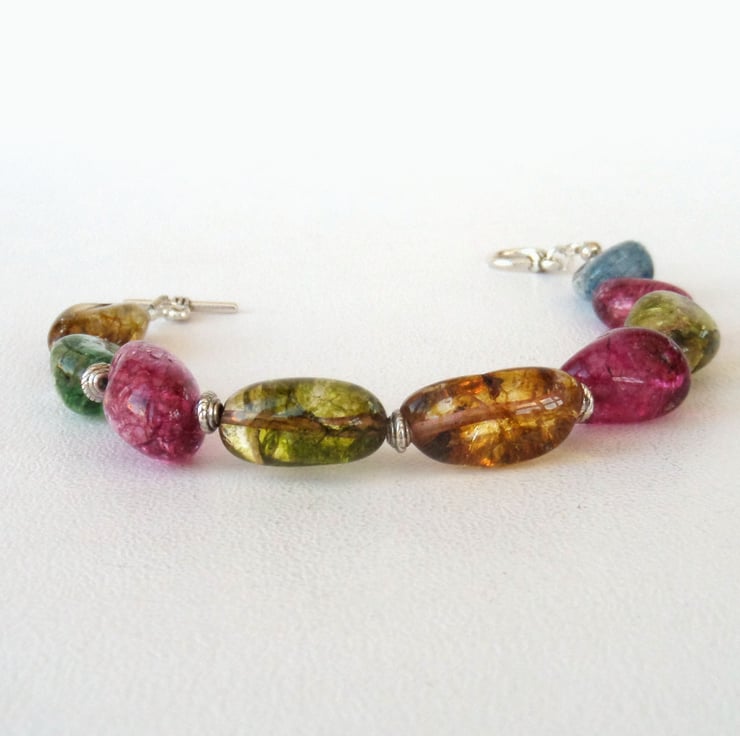A stunning and multi-coloured bracelet, created with a mix of colour tourmaline nuggets.