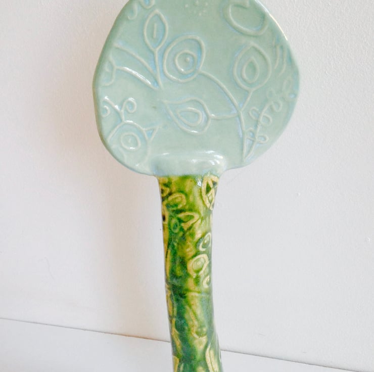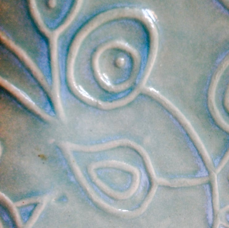 Gazed in a pretty turquoise maybe the birdie is a yellow canary?