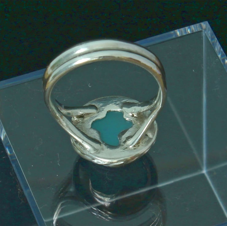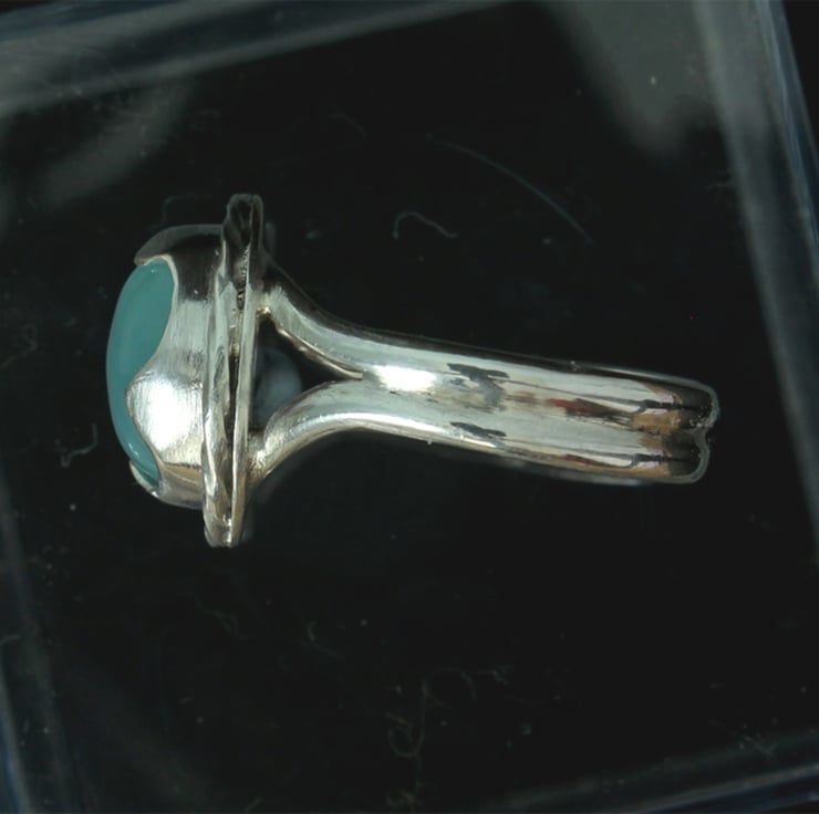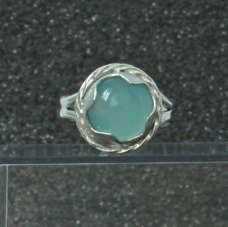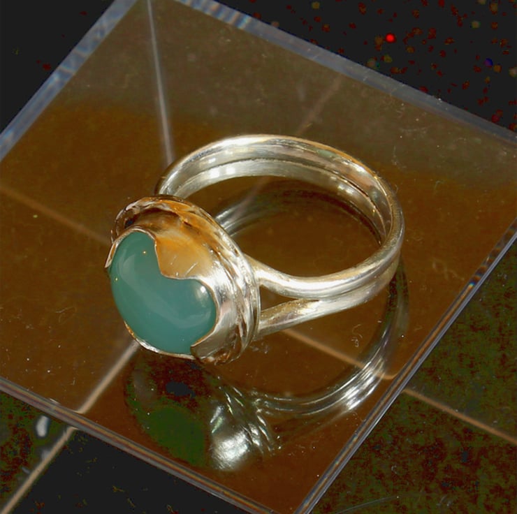 The stone measures 1.3cm across and the setting is 1.7cm across. The ring is size S (UK), size 9 (US). It is a unique piece and can't be made to other sizes, though many of my rings can.