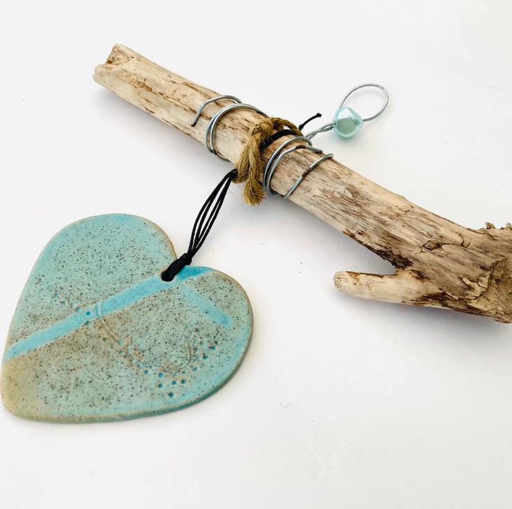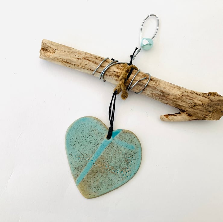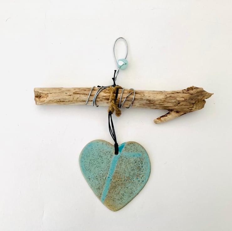 One off Driftwood, Loveheart hanger, pottery, gift idea, birthday, clay,