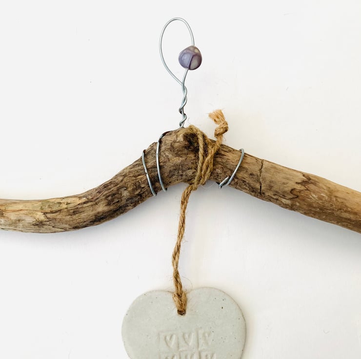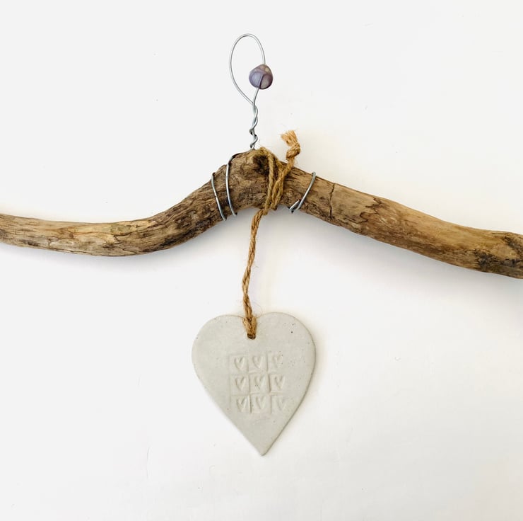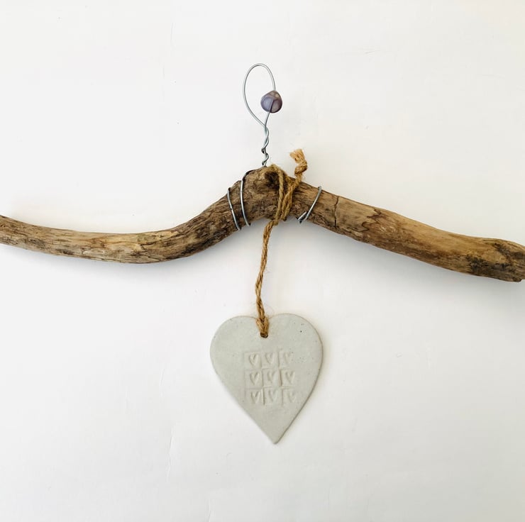Unique Driftwood, Loveheart hanger, pottery, gift idea, birthday, clay, UK