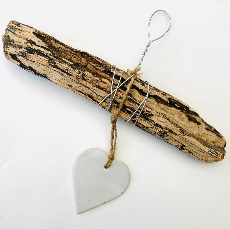 This pretty Driftwood, Loveheart hanger is made using natural driftwood, clay, twine and wire to create a beautiful one off design.