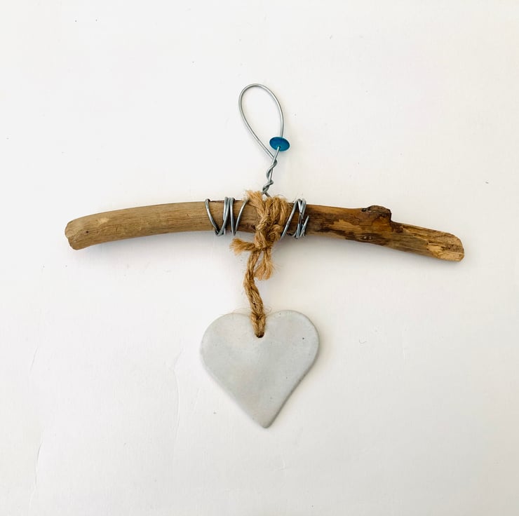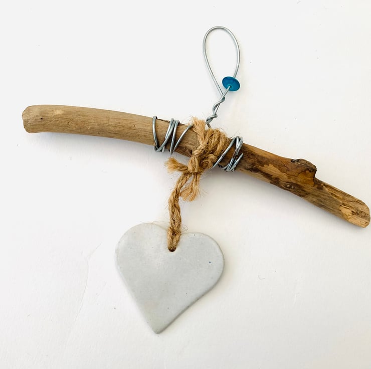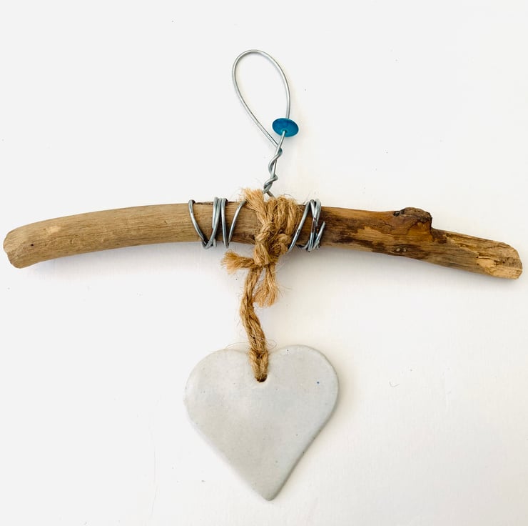 This pretty Driftwood, Loveheart hanger is made using natural driftwood, clay, twine and wire to create a beautiful one off design.