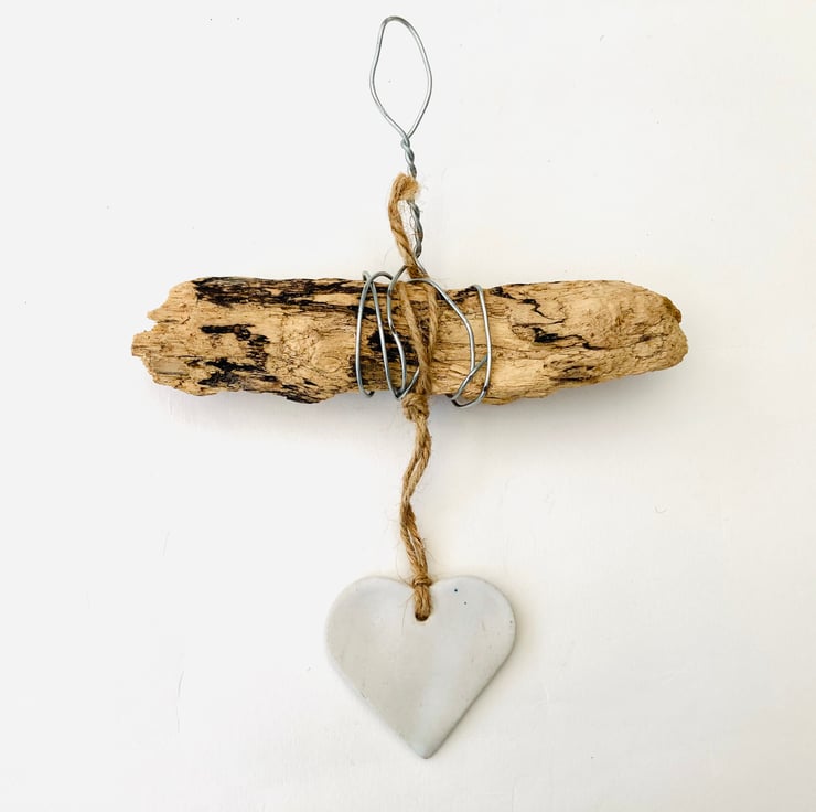 This pretty Driftwood, Loveheart hanger is made using natural driftwood, clay, twine and wire to create a beautiful one off design.