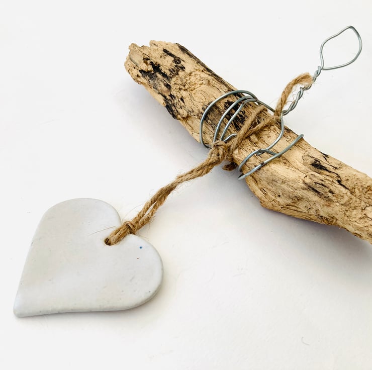 Handmade Driftwood, Loveheart hanger, pottery, gift idea, birthday, home decor,